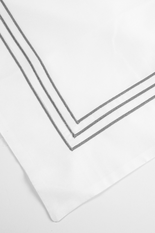 300TC COTTON SATEEN DUVET COVER SET ( 3 ROWS ) WHITE / SILVER