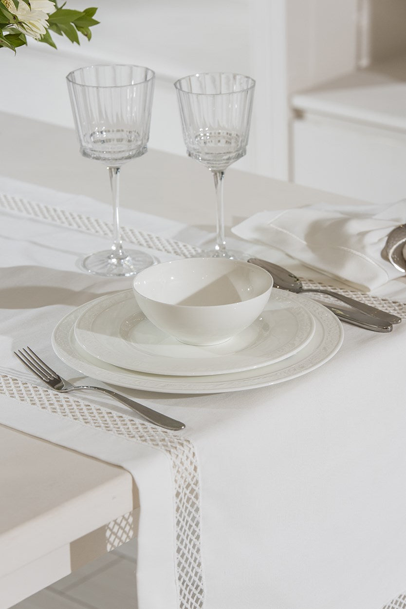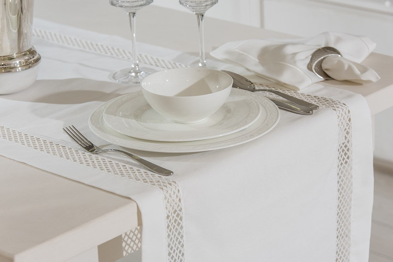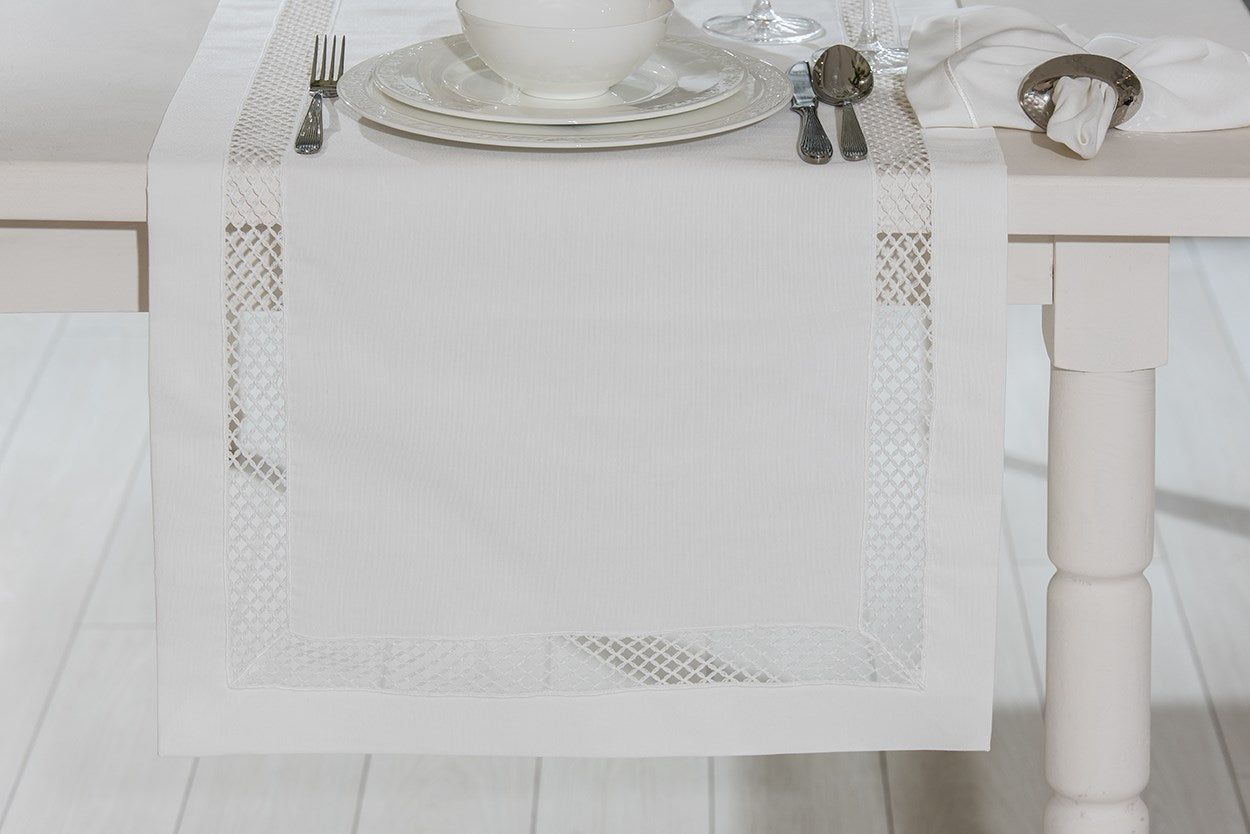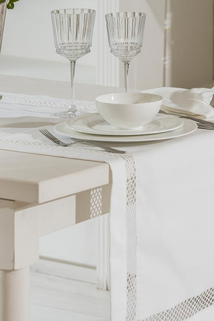 شريط طاولة دانتيل باللون الأبيض العنبر