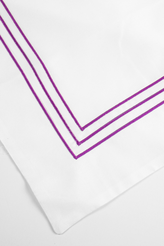 300TC COTTON SATEEN DUVET COVER SET ( 3 ROWS ) WHITE / VOILET