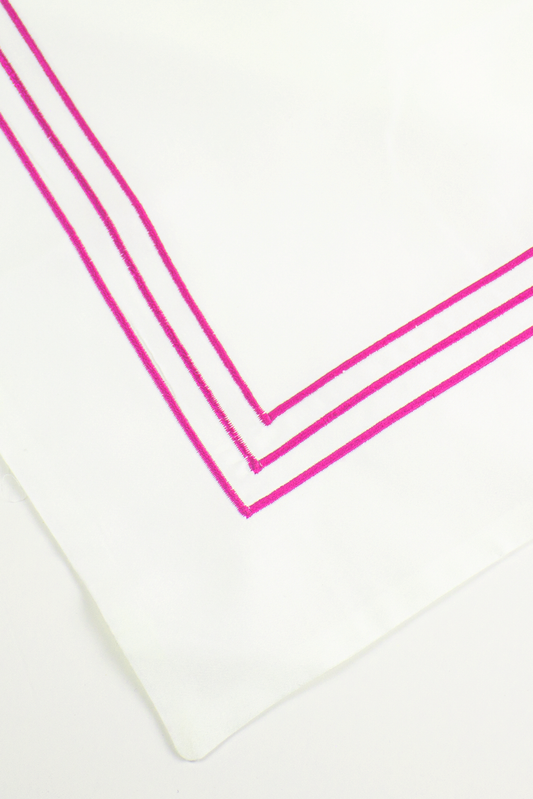400TC COTTON SATEEN KING DUVET COVER SET ( 3 ROWS ) WHITE / FUCHIA