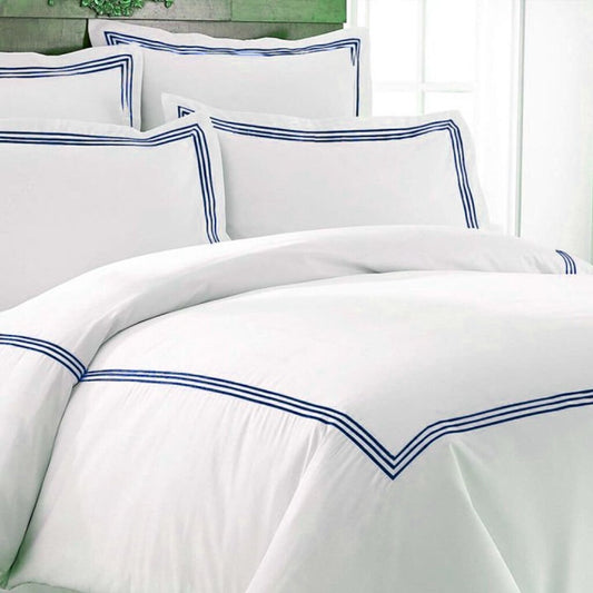 3 ROW EMBROIDERY EGYPTION COTTON SATEEN KING DUVET COVER SET OF ( 6 PCS )